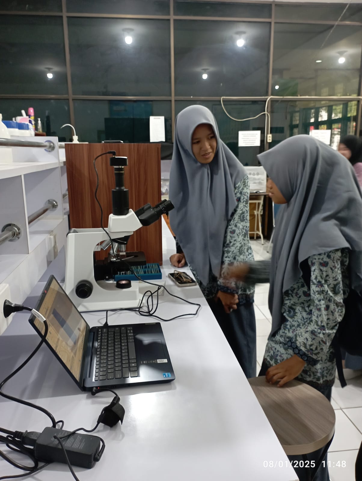 Penggunaan mikroskop trinokuler Optilab Lab dilaksanakan sesuai jadwal laboratorium yang telah ditetapkan. Kegiatan mencakup persiapan alat dan sampel, pengamatan mikroskopis, serta dokumentasi hasil pengamatan secara terjadwal dan terkontrol.