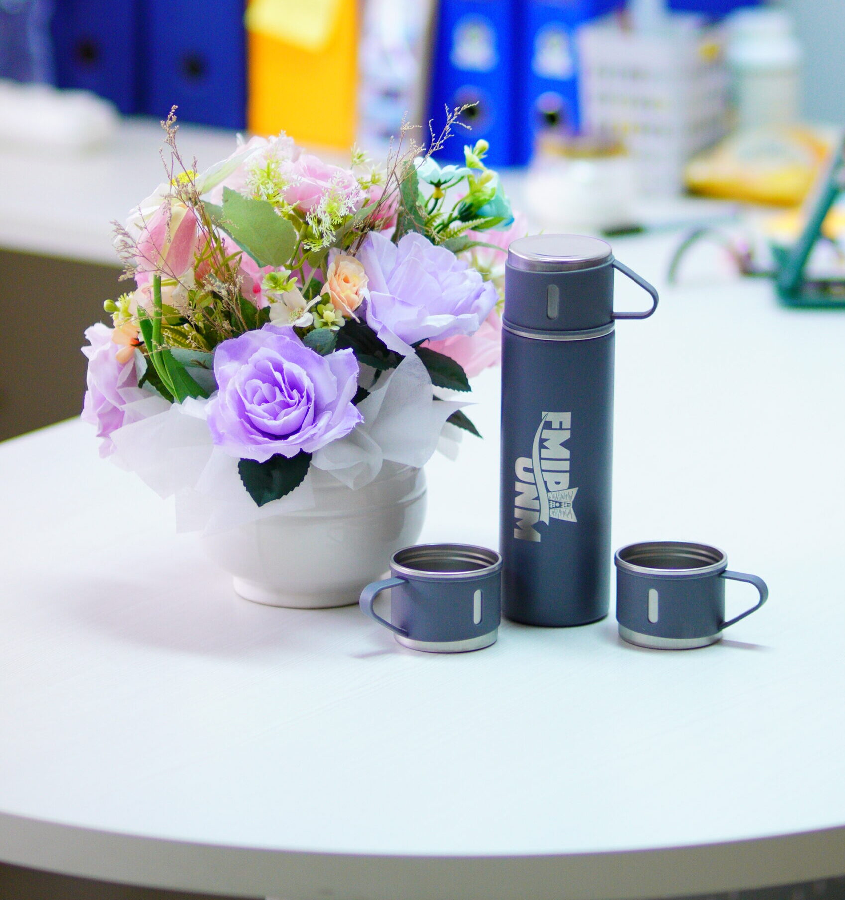 Tumbler berkapasitas 450 mL ini terbuat dari stainless steel tahan karat berkualitas tinggi. Didesain dengan tulisan FMIPA UNM bergaya modern, tumbler ini mampu menjaga minuman panas maupun dingin hingga 8 jam. Kokoh, awet, dan stylish—cocok untuk menemani aktivitas kampus maupun kegiatan sehari-hari.
